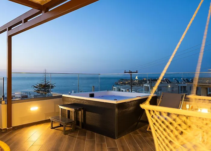 - ❓Hvad er afstanden mellem Private Rooftop Jacuzzi Sea View Walk To Beach villa og Kreta Chania lufthavn?Der er 70 km mellem Private Rooftop Jacuzzi Sea View Walk To Beach villa og lufthavnen Kreta Chania.